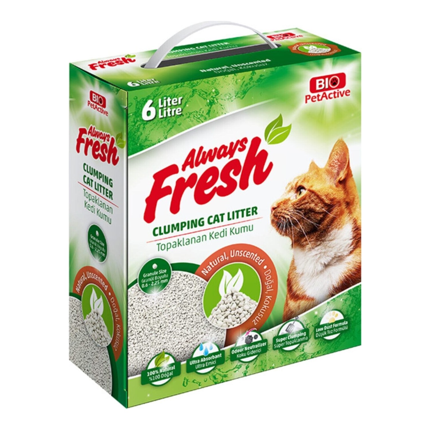 bio pet active always fresh dogal kokusuz topaklanan kedi kumu